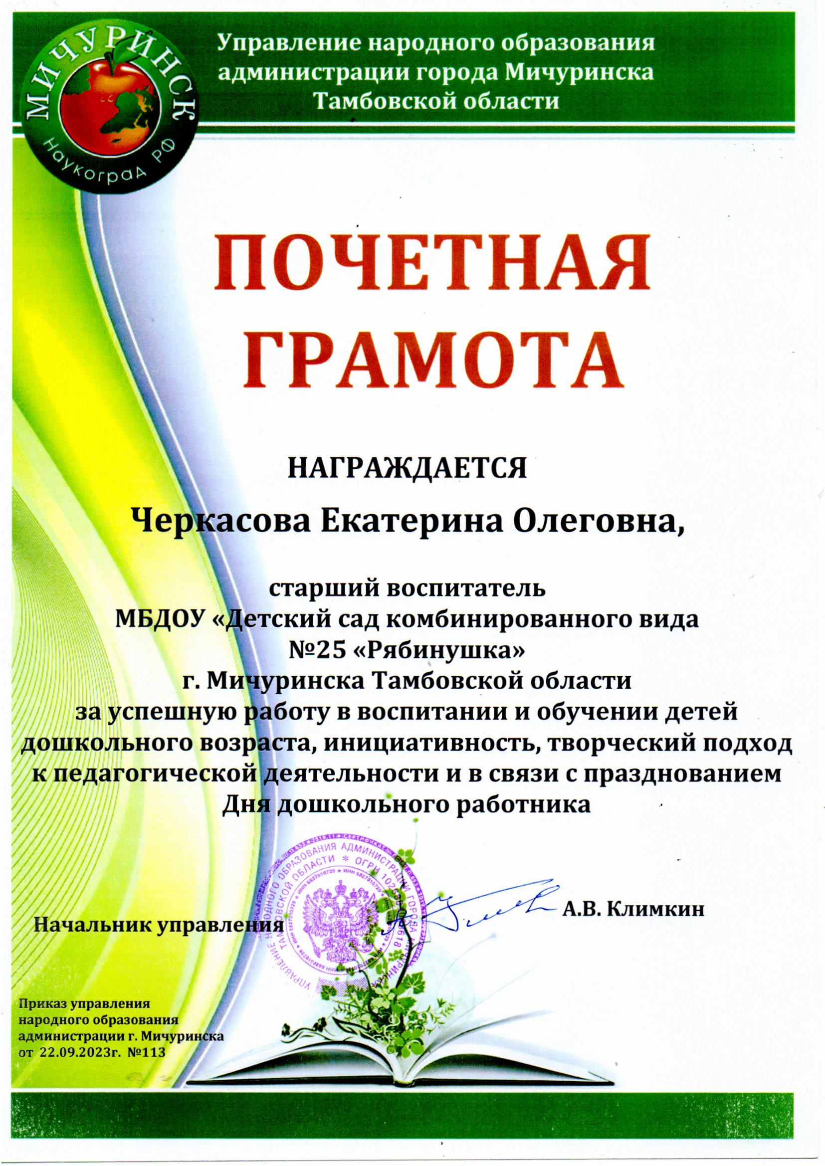 Портфолио МБДОУ”Детский сад комбинированного вида №25 “Рябинушка”